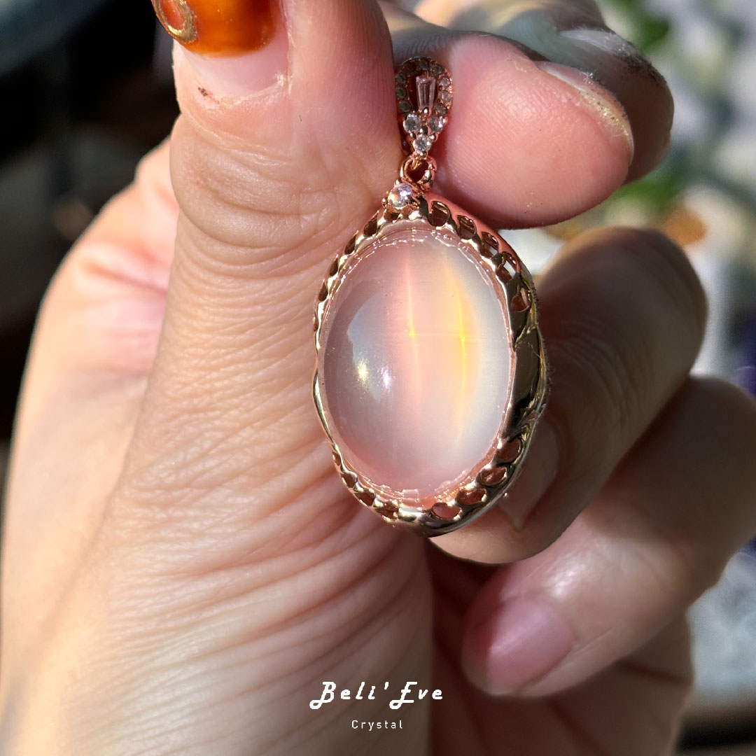 粉晶的粉色成因來自其內部的微量金屬元素與針狀包裹體(如粉色藍線石),使粉晶呈現出獨特的柔美色調。外觀可呈現朦朧、通透或棉絮感等多種形態,每一顆都具有天然獨特性。