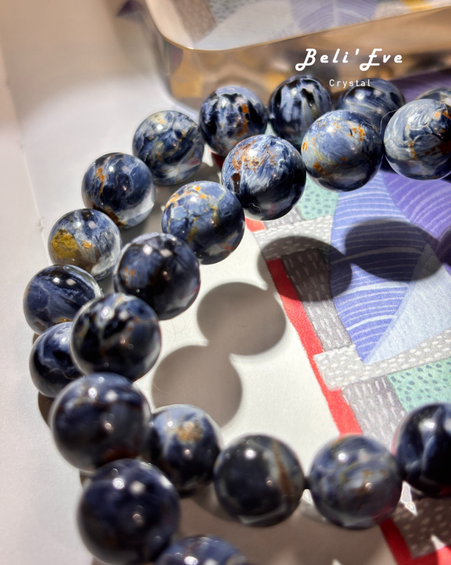 主色包含金、藍、黃、紅,呈現如同油畫般的流動感,是少見且能量強烈的玉髓類礦物。其中 藍色彼得石 更是同類中最具收藏價值。